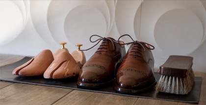 靴を磨く。